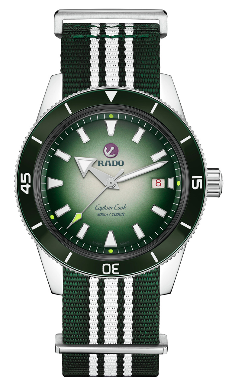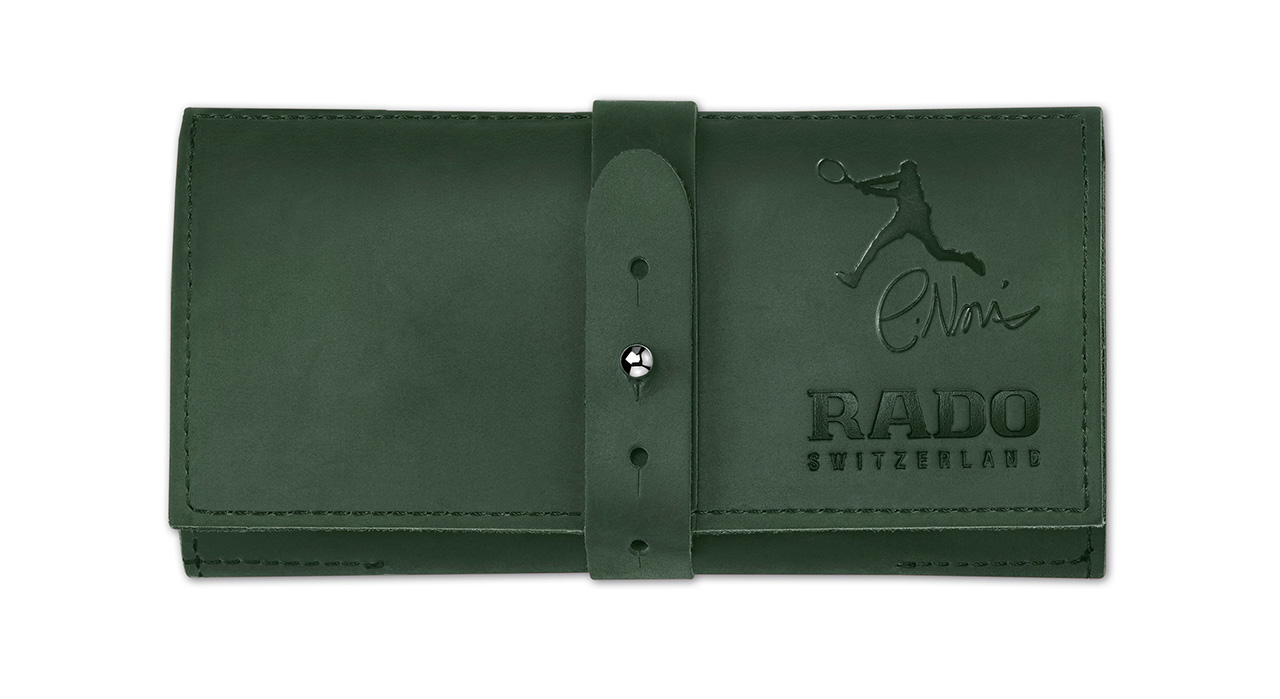 Captain Cook x Cameron Norrie Limited Edition представлены в зеленом кожаном футляре с подписью Кэмерона и сертификатом ограниченной серии, подчеркивая их уникальность среди коллекций Rado.
