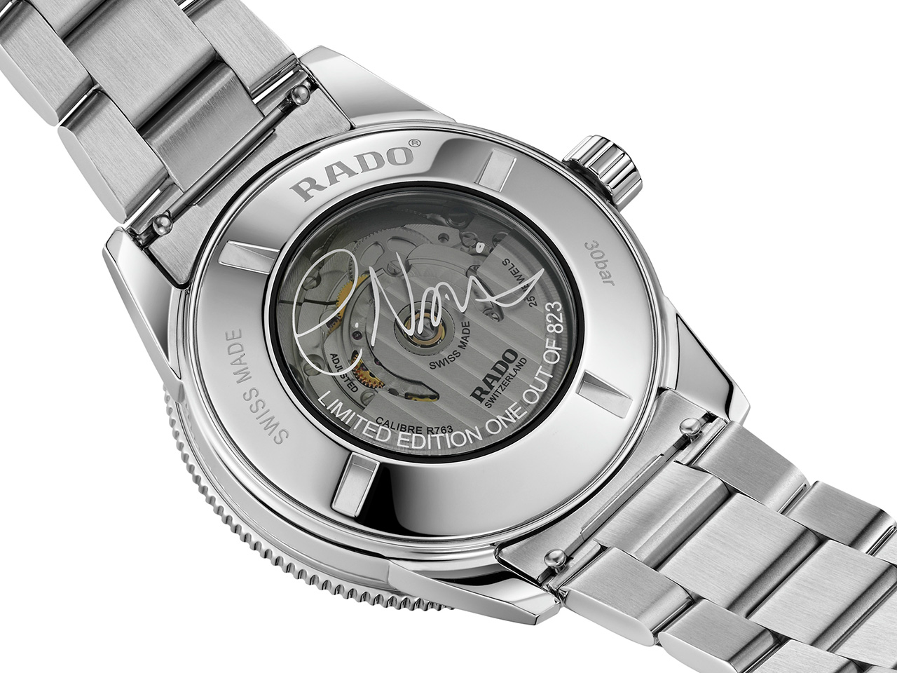 Часы комплектуются браслетом из нержавеющей стали и системой EasyClip от Rado. В комплекте часов предусмотрены два варианта ремешков: классический кожаный и текстильный в стиле НАТО. Задняя крышка с тонированным сапфировым стеклом и подписью Кэмерона Норри подчеркивает эксклюзивность модели.