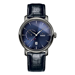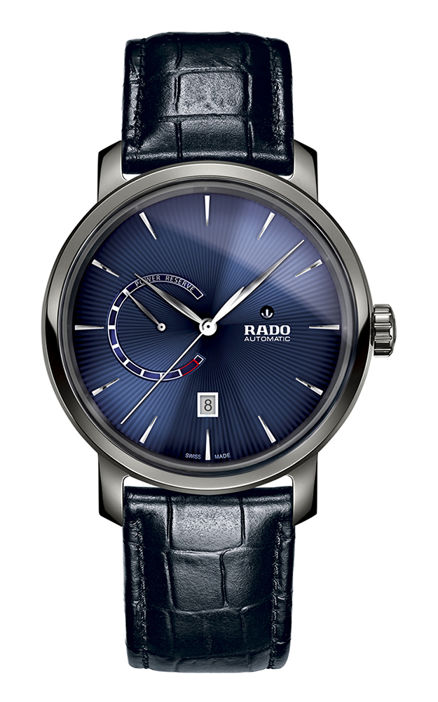 Модель имеет широко и легко читаемый циферблат — характерную черту всей линейки Rado DiaMaster Power Reserve. Циферблат, украшенный узором «солнечные лучи» и оснащенный индикатором запаса хода на 9-часовом делении, сияет как в синем, так и в черном цветовом оформлении.