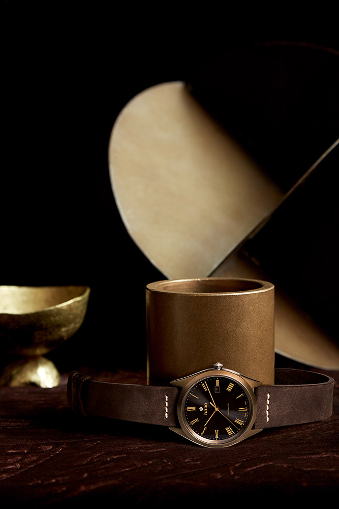 - Мосты из анодированного алюминия черного цвета и платина специально для бренда Rado.