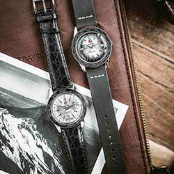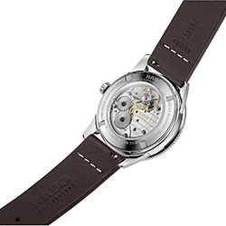 Лимитированная серия часов Captain Cook Over-Pole представлена в стильном кожаном кейсе из коричневой кожи. В набор также входит браслет из нержавеющей стали с узором «рисовое зерно», который легко заменить при помощи системы EasyClip для создания нового образа.