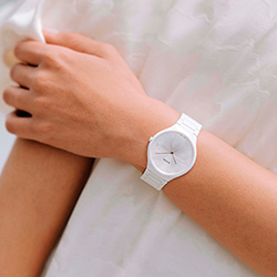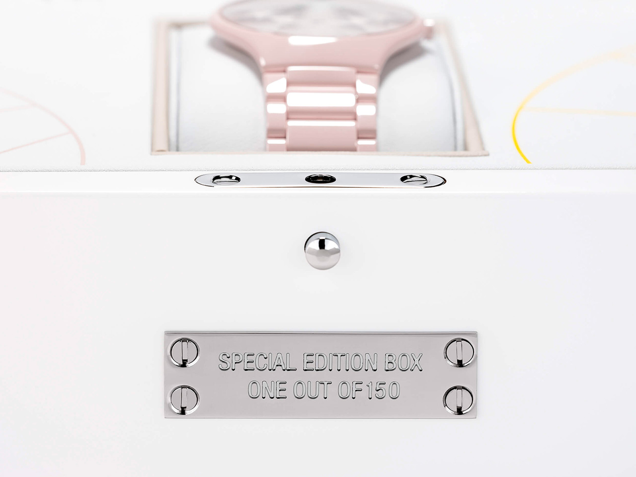 Ход времен года завершает белоснежная зима. Воплощающая в себе чистоту и благородство высокотехнологичная керамика белого цвета, полированный корпус-моноблок, сапфировое стекло в виде снежинки подарят вам праздничное настроение. Окантовка морозного белого цвета окружает серебристый циферблат и логотип темно-серого цвета, а кварцевый механизм R420 позаботится о надежном и точном отображении времени в ожидании весны. И без того легкая и гладкая высокотехнологичная керамика в белом цвете дарит еще более комфортные ощущения.