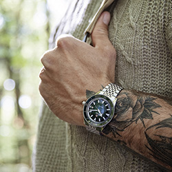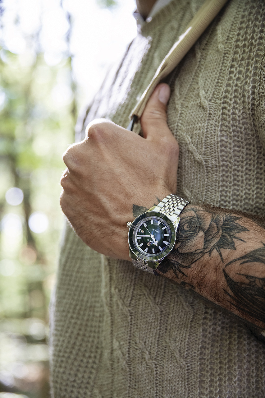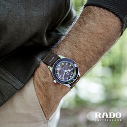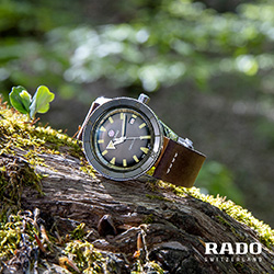 Созданные для современных исследователей, часы Captain Cook оснащены циферблатом зеленого цвета, безелем из высокотехнологичной керамики зеленого цвета и сверхпрочным сапфировым стеклом, которое стало обязательным компонентом всех часов Rado.