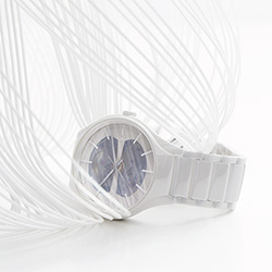 Высокотехнологичная керамика обладает массой уникальных физических свойств и, прежде всего, таких, как лёгкость (на четверть легче стали), прочность (в пять раз твёрже стали) и химическая инертность (гипоаллергенность). А её великолепные эстетические качества очевидны как у модели в матово-чёрном керамическом корпусе с пескоструйной обработкой, так и у модели в полированном корпусе из керамики белого цвета.