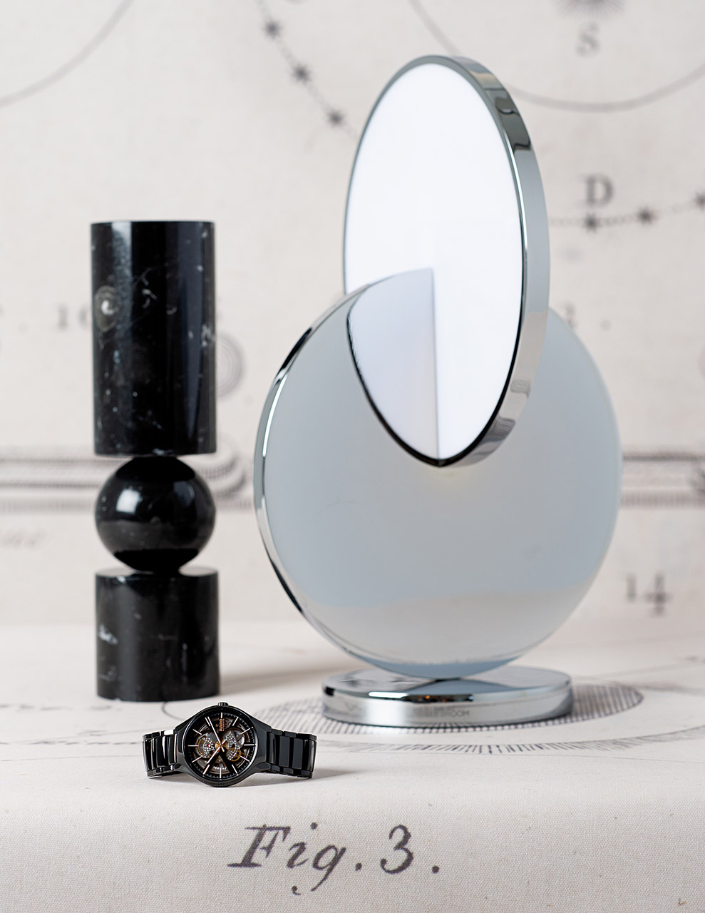Новая модель True Open Heart Automatic выполнена из знаковых материалов компании Rado — сверхлегкой, устойчивой к появлению царапин высокотехнологичной керамики и сапфирового стекла. Оба материала используются для создания акцента на ключевых деталях механизма.