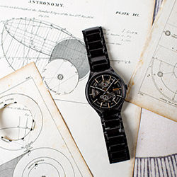 - Заводная головка из полированной высокотехнологичной керамики черного цвета.