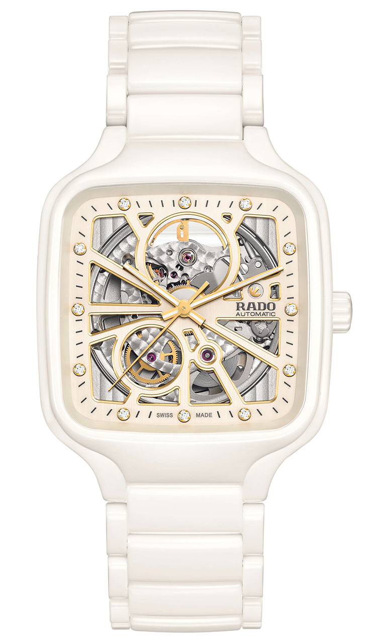 Открытое сердце Rado True Square пробуждает самые важные моменты вашей совместной жизни – и драгоценные воспоминания, запертые в вашем сердце. Квадратный корпус с мягкими углами и краями выполнен из материала, который на ощупь такой же легкий и теплый, как прикосновение любимого человека. А скелетонизированный циферблат манит взгляд к открытому сердцу механизма внутри. Форма подходит для любого запястья, а дополняющие друг друга черно-белые варианты станут идеальным подарком на День святого Валентина.