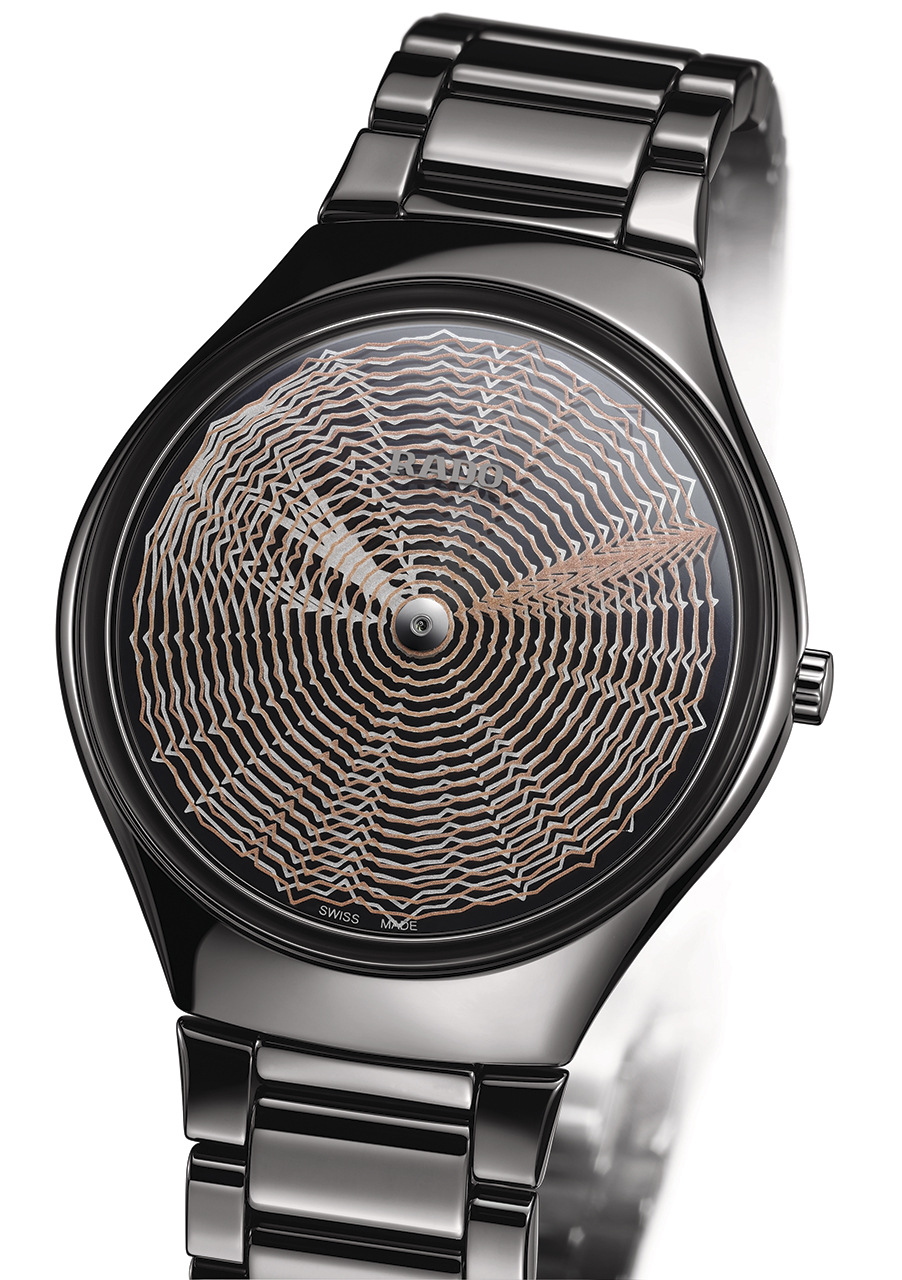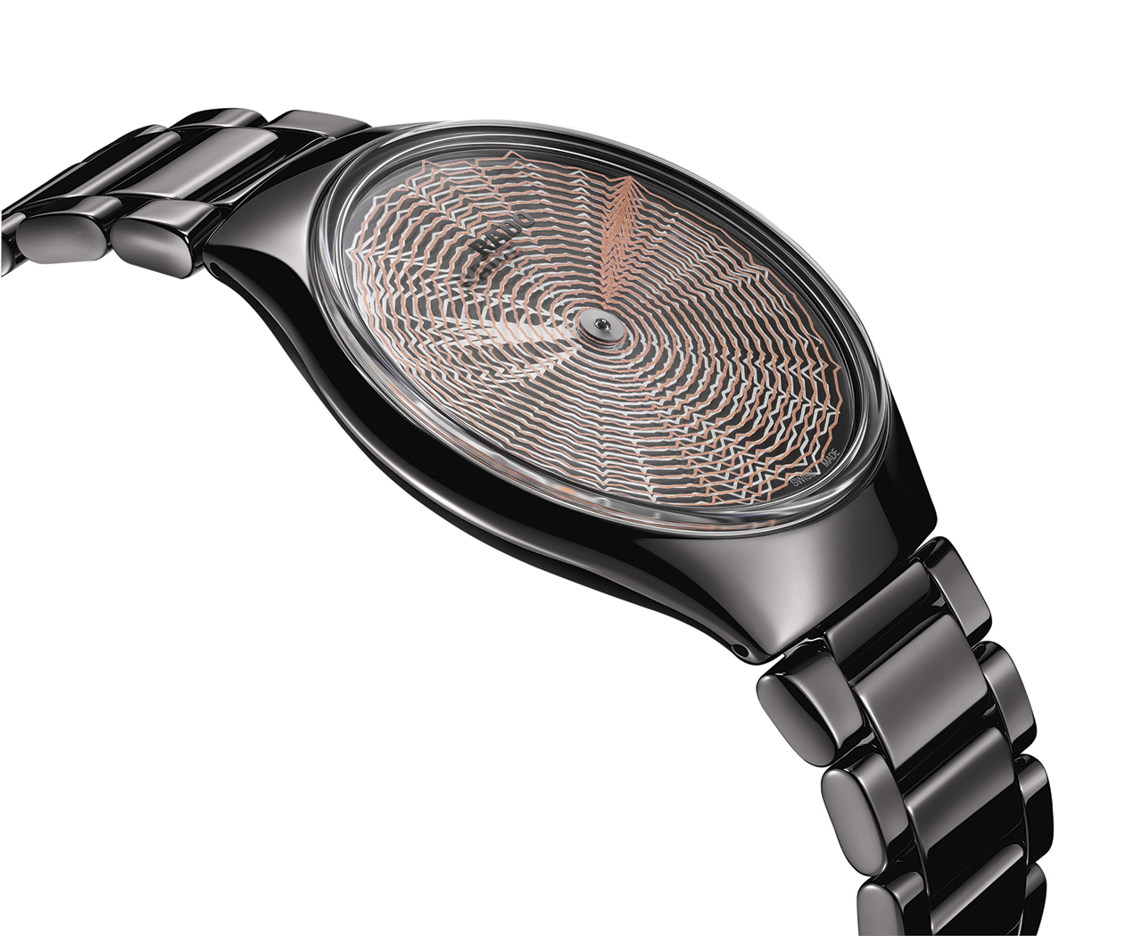 Часы True Thinline Deep Web, выполненные из полированной черной высокотехнологичной керамики и оснащенные инновационными стрелками-дисками, выпущены лимитированной серией в 1001 экземпляр с особой гравировкой на задней части корпуса.