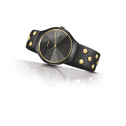 Игра с контрастом продолжается и на ремешке часов, где необычный узор из вставок золотого цвета эффектно оттеняет черную фактурную кожу. Корпус конструкции моноблок из черной матовой высокотехнологичной керамики с деталями на циферблате и заводной головкой цвета золота завершают композицию новой модели часов.