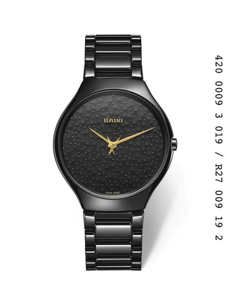 Компания Rado представляет новую модель из дизайнерской коллекции 2019 года. В сотрудничестве с японским дизайнером Аяко Сува создана новая версия часов True Thinline из полированной высокотехнологичной керамики черного цвета.