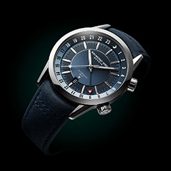 Эта искусная игра оттенков распространяется и на центральную часть циферблата, где средне-синие тона, расположенные над апертурой даты, приобретают более насыщенный цвет в верхней части циферблата. Модель freelancer GMT включает в себя множество тонких деталей, призванных обогатить впечатления от владения часами. Например, исполнение часовой дорожки в виде улитки, что придает ей блеск и оттенки, повторяющиеся по всей композиции.