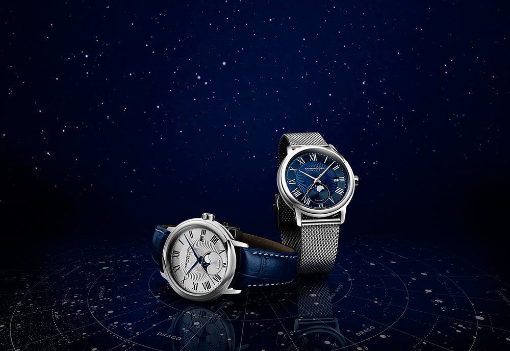 RAYMOND WEIL представляет модель Moon Phase из коллекции Maestro — часы в классическом стиле с элегантным индикатором фаз Луны. Новый элемент синхронизирует ритм времени со звездами и выполнен в лучших традициях швейцарского часового дела.