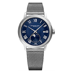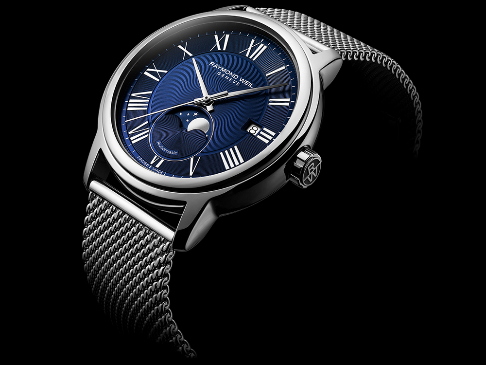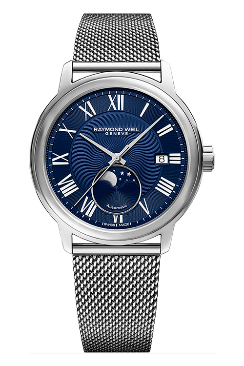 Часы Maestro Moon Phase — это еще одно произведение часового искусства вне времени, созданное выдающейся компанией, производителем часов класса люкс RAYMOND WEIL.