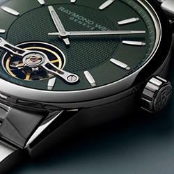 Центральное место в этих часах занимает видимое балансировочное колесо, расположенное над положением «6 часов». Дизайн с открытой диафрагмой подчеркивает индивидуальный механический механизм RAYMOND WEIL с автоматическим заводом.