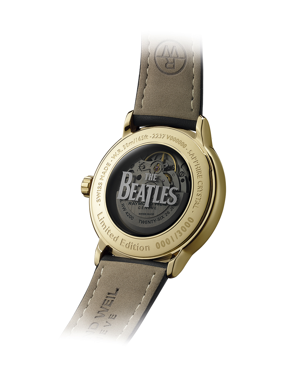 Часы Maestro в серии The Beatles Sergeant Pepper работают от механического калибра RW4200 с автоподзаводом. Запас хода составляет 38 часов. Модель имеет корпус 40 мм из полированной нержавеющей стали с PVD-покрытием из желтого золота. Впервые среди часов RAYMOND WEIL эта модель оснащена ремешком из «веган-кожи». Задняя крышка выполнена из дымчатого сапфирового стекла с официальным логотипом The Beatles и выгравированным номером экземпляра в ограниченной серии. Выпуск этой эксклюзивной модели, посвященной легендарной ливерпульской четверке, ограничен 3000 экземпляров по всему миру.