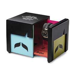 Часы Maestro серии The Beatles Sergeant Pepper представлены в специальной коробке, посвященной культовым музыкантам. Каждая сторона упаковки отводится одному из участников легендарной четверки и окрашена в яркий цвет костюма — в нем член группы изображен на обложке альбома. На внутреннюю поверхность коробки нанесены знаменитый барабан Sergeant Pepper и логотип The Beatles как знак одобрения со стороны этого культового бренда.