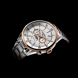Часы «Roamer Superior Moonphase» обладают впечатляющим корпусом диаметром 43,0 мм, изготовленным из нержавеющей стали, который, также, может быть выполнен в двухцветной версии из нержавеющей стали с покрытием из розового золота.