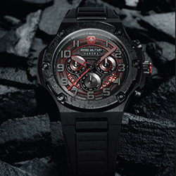 Хронограф Mission XFOR 01 создан, чтобы выделяться и притягивать внимание. Серый циферблат, имитирующий графитовую поверхность, с красными, в цвет швейцарского флага, акцентами, накладные арабские цифры и стрелки с люминесцентным составом, красный скелетонизированный диск даты. Верный швейцарским корням, мощный полностью черный 44 мм корпус, черный силиконовый ремешок. Высококачественная отделка, прочный корпус. SWISS MILITARY HANOWA Mission XFOR 01 – идеальные сухопутные часы.