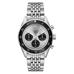 Винтажный образ по-новому оживает в актуальных чертах современности. Округлые выпуклые кнопки хронографа, рифленая заводная головка, логотип TAG Heuer и браслет из стали со звеньями в виде рисовых зерен решены в винтажном стиле. Модель в стиле нео-ретро имеет характерное для того времени расположение счетчиков согласно правилу «1/3 – 2/3», разработанному Джеком Хоэром, что обеспечивает удобство считывания показаний и точности измерений.
