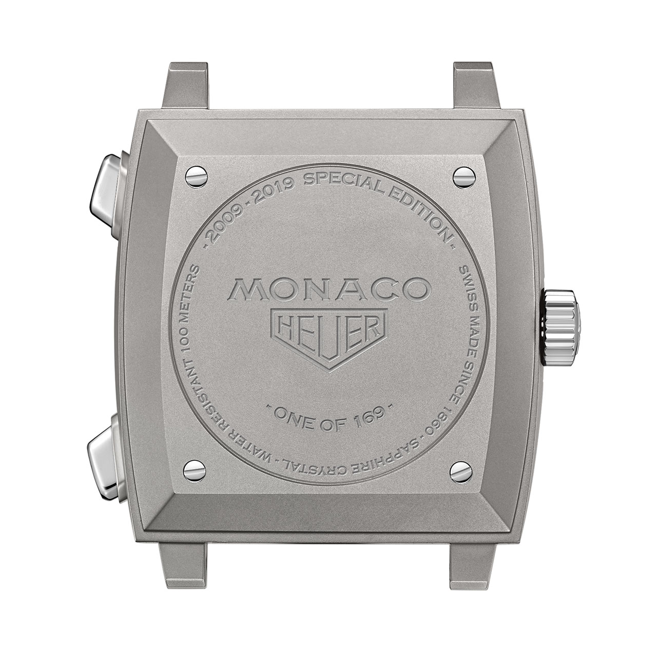 На задней крышке часов, вдохновленных 2010-ми годами, выгравирован оригинальный логотип Monaco Heuer, а также надписи «2009-2019 Special Edition» и «One of 169». При изготовлении стального корпуса новых часов Monaco, дизайн которых воплотил в себе основные черты исторического прототипа, использованы различные виды обработки. В результате задняя крышка составлена из комбинированных матовых и полированных поверхностей с различным (вертикальным и круговым) направлением рисунка. Внутри корпуса находится знаменитый Calibre 11, современная версия механизма хронографа с автоматическим подзаводом, который дебютировал в оригинальных Monaco в 1969 году. Модель выпущена тиражом в 169 экземпляров.