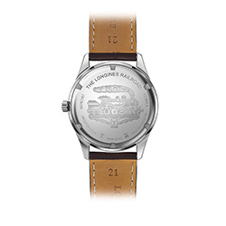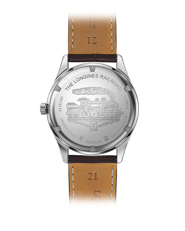 L2.803.4.23.0 Швейцарский бренд наручных часов «Longines» напомнил о своей многолетней традиции создателя железнодорожных часов выпуском современной реплики хронографа «The Longines RailRoad», первоначально созданного в 1960 году. Корпус новинки, диаметром 40 мм, изготовлен из нержавеющей стали. Часы оснащены эксклюзивным автоматическим механизмом калибра «L888.2». Белый циферблат является точной копией циферблата оригинальной модели 1960 года, а дизайн гравированного изображения на задней крышке заимствован у оригинальных карманных часов, изготавливавшихся специально для сотрудников железных дорог в 20-х годах прошлого века. К часам прилагается ремешок чёрного цвета из кожи аллигатора, который подчёркивает их строгость, элегантность и профессиональную принадлежность.