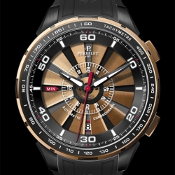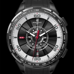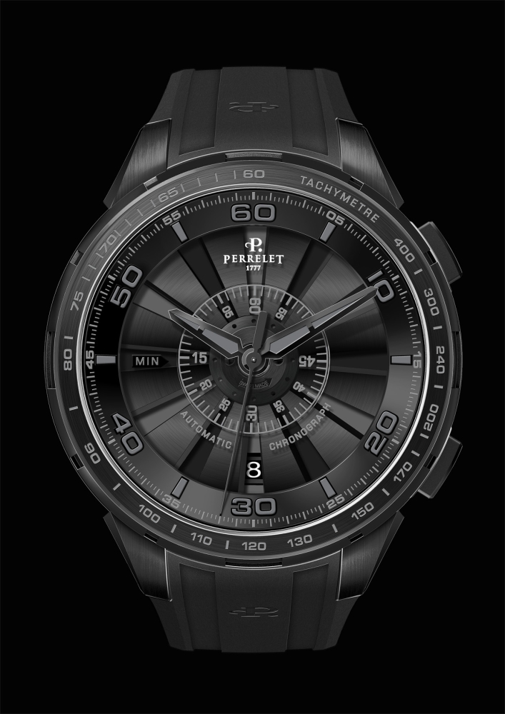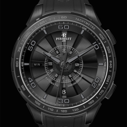 Очевидно, что новые часы «Turbine Chrono», в которых установлен механизм хронографа с центральной индикацией, существенно расширили границы мастерства специалистов компании «Perrelet S.A.» и стали важным этапом на пути дальнейшего поиска и воплощения инновационных идей. Этот значительный этап в деятельности Perrelet ознаменован выпуском сразу пяти дизайнерских версий хронографов, представленных градацией различных оттенков чёрно-белой цветовой гаммы. Изящный квинтет включат в себя экземпляры моделей с элементами, выполненными из розового золота, а также модель «All-Black» – полностью в чёрном исполнении: