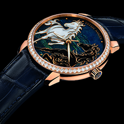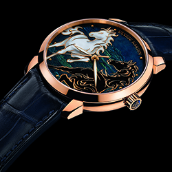 В процессе изготовления новых часов компания «Ulysse Nardin» часто обращается к сложному и кропотливому искусству росписи эмалевых циферблатов. «Ulysse Nardin» – одна из немногих современных часовых компаний способных создавать часовые шедевры с использованием этого древнего художественного ремесла. Новая модель «Classico Horse» – это исключительное по красоте, изяществу и экспрессии мастерское творение ручной работы.