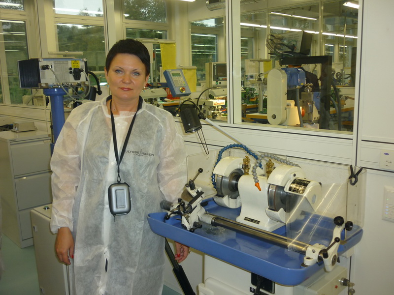 Скрупулезность и точность мастеров Ulysse Nardin поражала не раз. Некоторые детали, из которых собираются часы, настолько малы, что даже под лупой такие шестеренки выглядят очень маленькими. Естественно, в процессе обращения с деталями нужны максимальная собранность и сконцентрированность. Поэтому у каждого работника на фабрике есть свой личный график – отработал несколько часов, отдохнул и опять за работу. И если мужчины в основном занимаются разработкой идей коллекций и задействованы на технологически сложных участках, женщины выполняют более монотонную работу - например, одна из них всю смену тщательно шлифует винтик, вставляет в его паз.