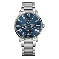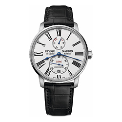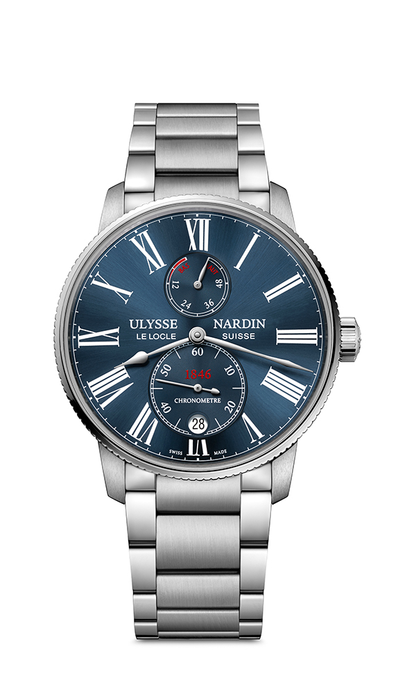 Характерный дизайн циферблата демонстрирует преемственность предыдущим моделям из коллекции Marine: римские цифры, историческое изображение логотипа, вкрапления красного цвета в написании «1846» – года образования часовой компании Ulysse Nardin. Несмотря на узнаваемую форму часовой и минутной стрелки, они претерпели ряд изменений. Модернизированы малая секундная стрелка, окошко даты в положении «6 часов», индикатор запаса хода на отметке «12 часов».