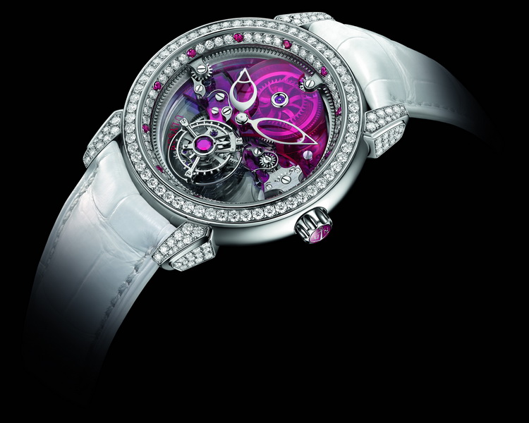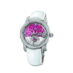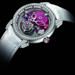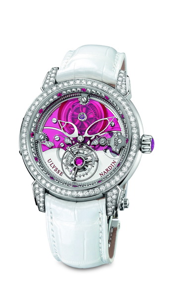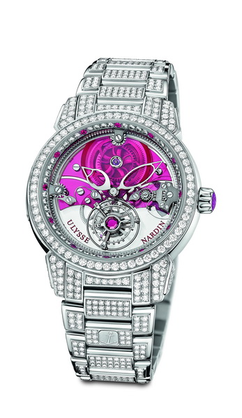 Швейцарская мануфактура «Ulysse Nardin» – одна из старейших в стране компаний, специализирующихся на производстве механических часов, пополнила свою коллекцию женских ювелирных часов «Royal Tourbillon». Новинка получила название «Royal Ruby Tourbillon» и является своеобразным продолжением ранее выпущенных часов «Royal Blue Tourbillon», в которых ювелирная тема основана на сапфирах.