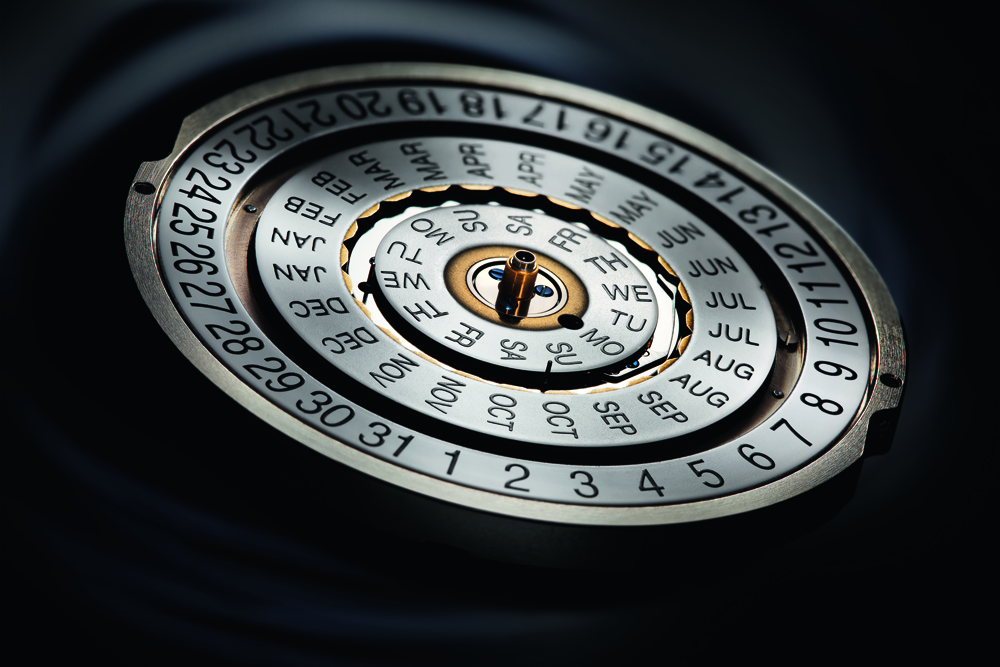 Оптимальная считываемость показаний календаря отображается с помощью трёх вращающихся дисков: внешнего, показывающего дату, среднего, демонстрирующего месяц, и внутреннего – на котором отображается день недели. Устройство календаря отличается простотой и оригинальностью конструкции. Так, если в месяце насчитывается 31 день, то месячный диск переводится числовым диском как обычно, а если в месяце 30 дней, то месячный диск обеспечивает переход числового диска, минуя 31-е число. Корректировка годового календаря осуществляется только в том случае, когда заканчивается февраль и начинается март. Эта невероятно простая конструкция состоит из девяти подвижных элементов, а, например, в большей части других календарей количество подвижных элементов достигает от 30 до 40 единиц.