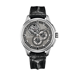 3. Модель 95.2260.4035/21.C759 Корпус из матового титана; грифельно-серый циферблат с матовой бархатистой отделкой; чёрный ремешок из кожи аллигатора с подкладкой из каучука; тройная раскладывающаяся застёжка из титана. |